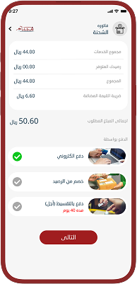 يتيح التطبيق خيارات دفع إلكترونية متنوعة وآمنة، تشمل مدى، بطاقات فيزا وماستركارد، آبل باي، والمحافظ الرقمية، مما يوفّر مرونة وسهولة للمستخدمين