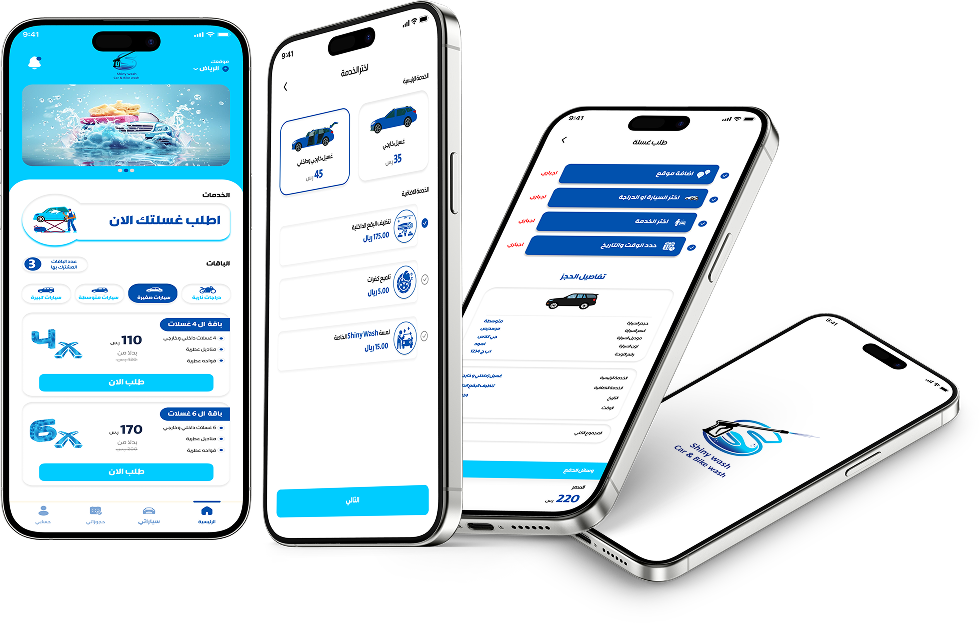 تطبيق Shiny Wash هو تطبيق مبتكر لخدمات غسيل السيارات في الرياض، يقدم تجربة ميدانية ذكية حيث يمكن لمالك السيارة طلب خدمة الغسيل في المنزل أو العمل بضغطة زر